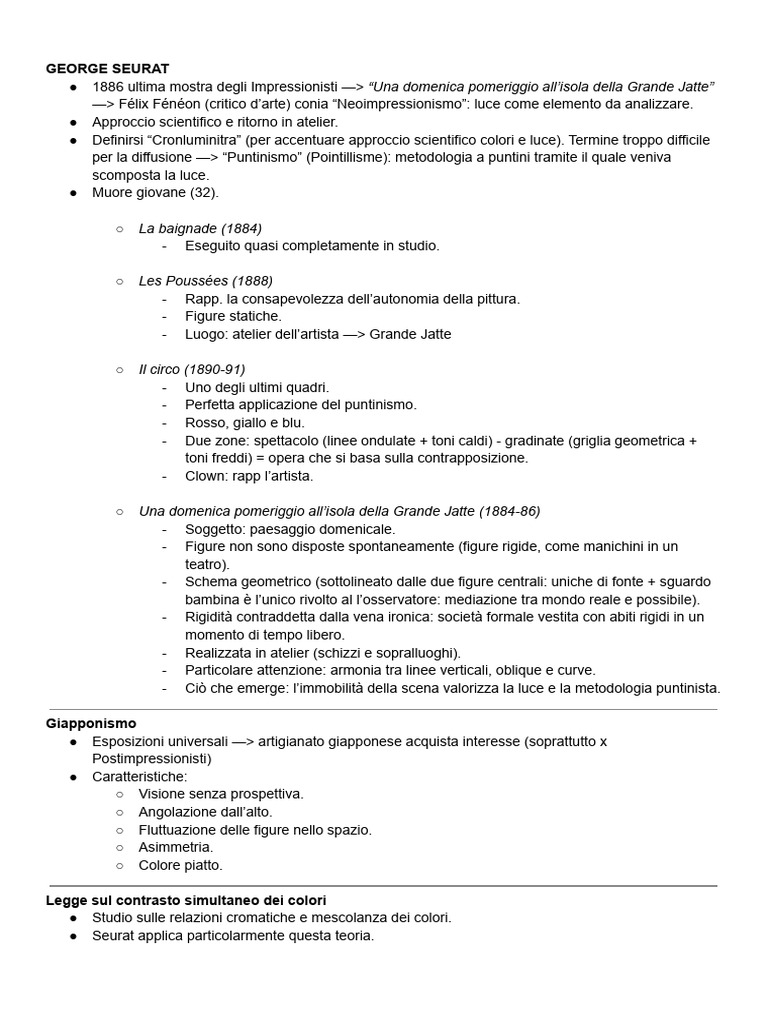 ● 1886 ultima mostra degli Impressionisti —> “Una domenica pomeriggio all’isola della Grande Jatte”