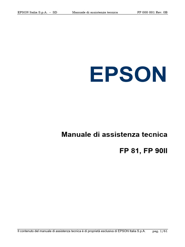 EPSON Italia S.p.A. - SD Manuale di assistenza tecnica FP 000 001 Rev. 0B