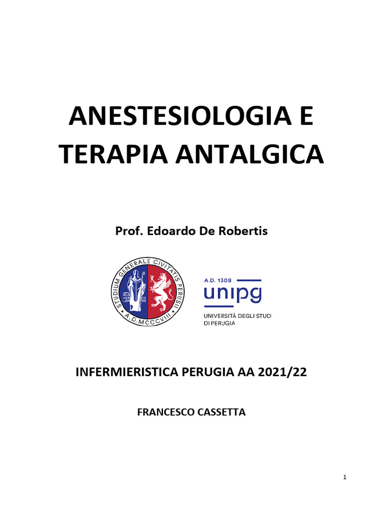 ANESTESIOLOGIA E TERAPIA ANTALGICA