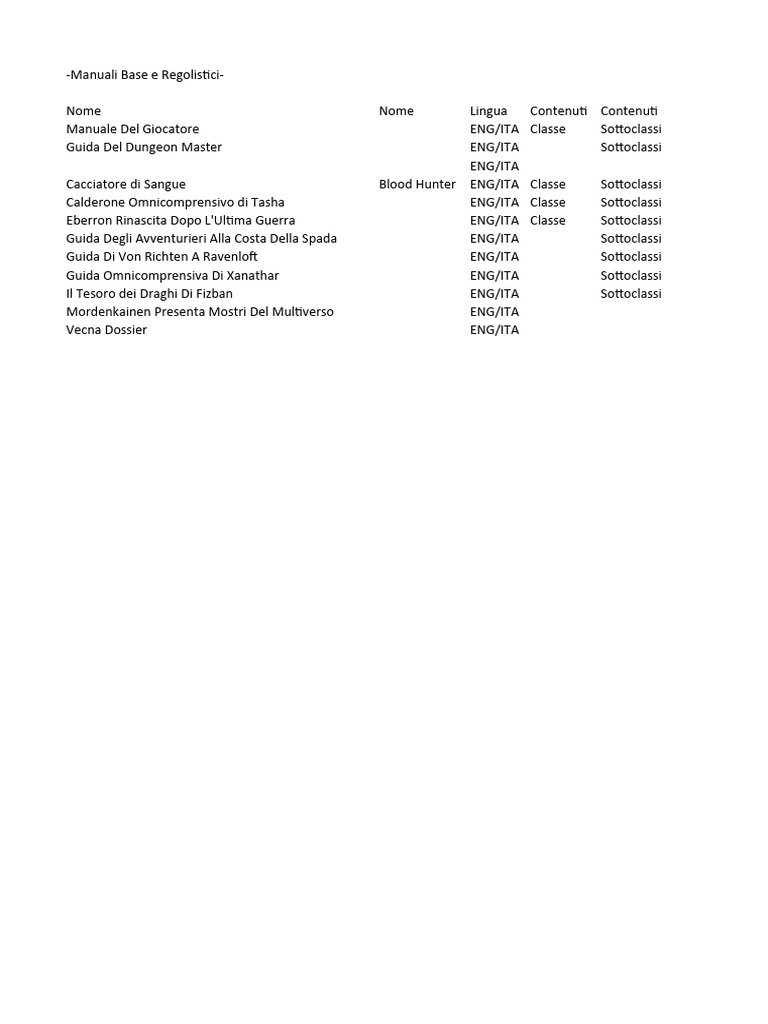Manuale Del Giocatore ENG/ITA Classe Sottoclassi