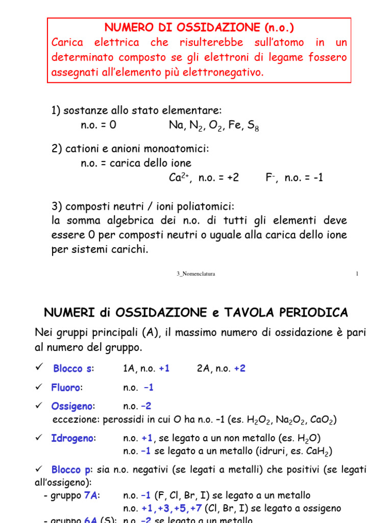 NUMERI di OSSIDAZIONE e TAVOLA PERIODICA
