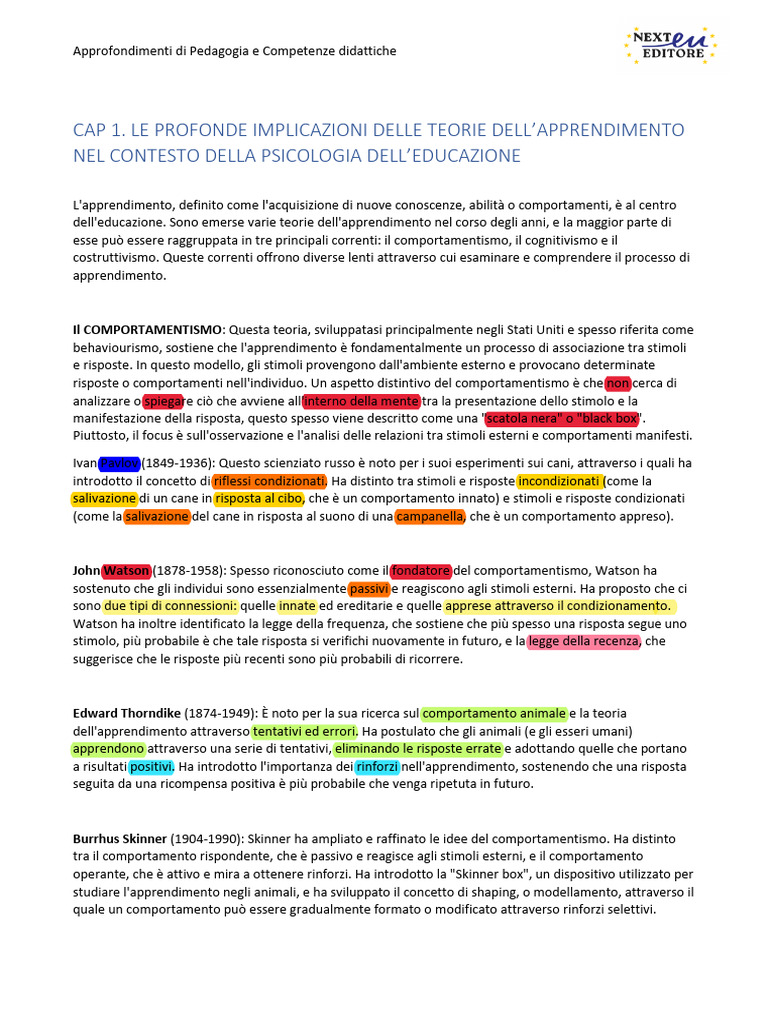 behaviourismo, sostiene che l'apprendimento è fondamentalmente un processo di associazione tra stimoli