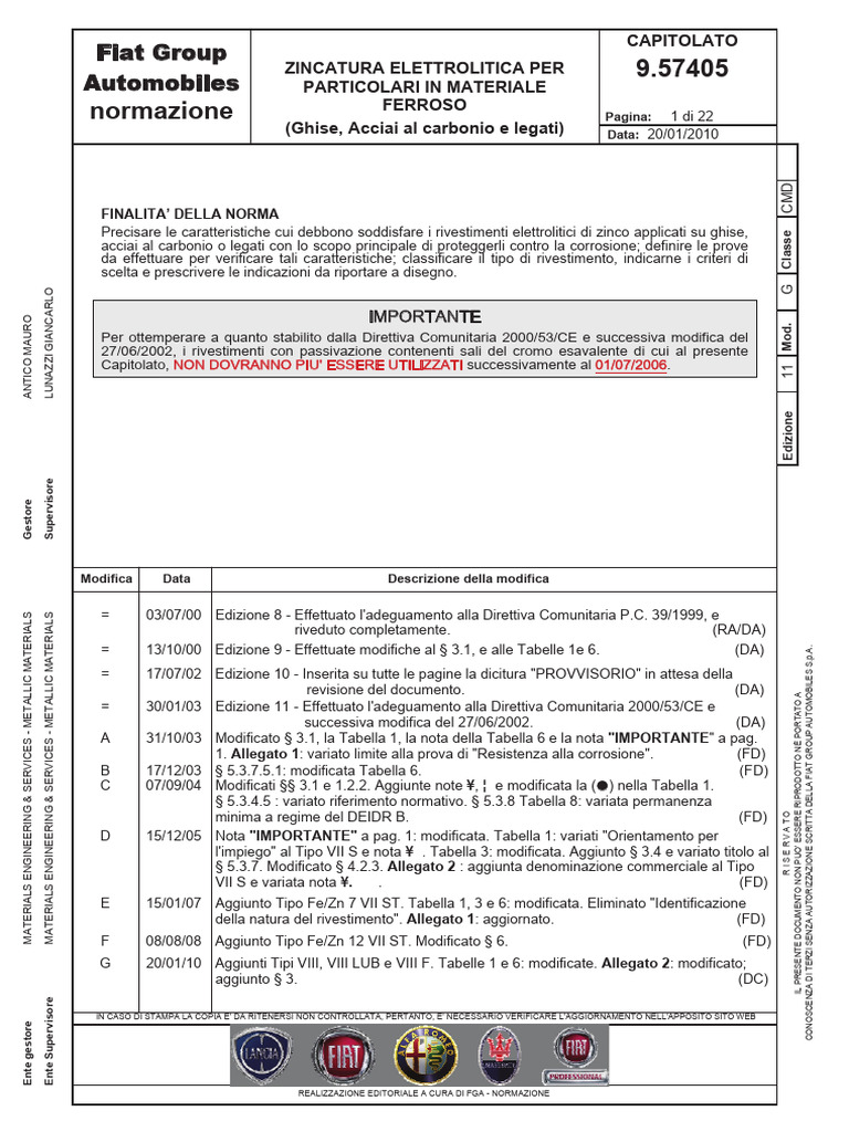 eliminazione del cromo esavalente da tutti i disegni di nuova emissione (componenti Powertrain
