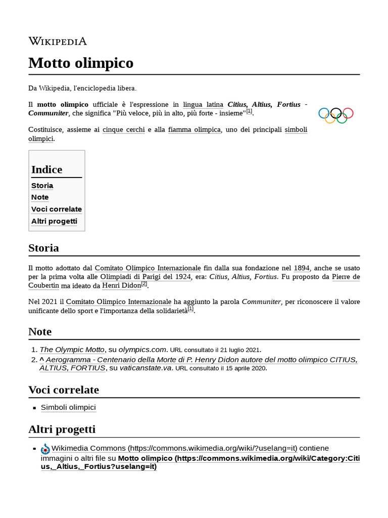 1. The Olympic Motto, su [Link]. URL consultato il 21 luglio 2021.