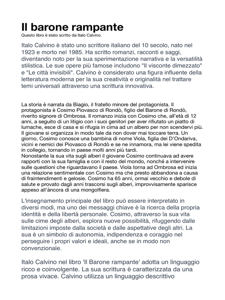 Italo Calvino nel libro 'Il Barone rampante' adotta un linguaggio