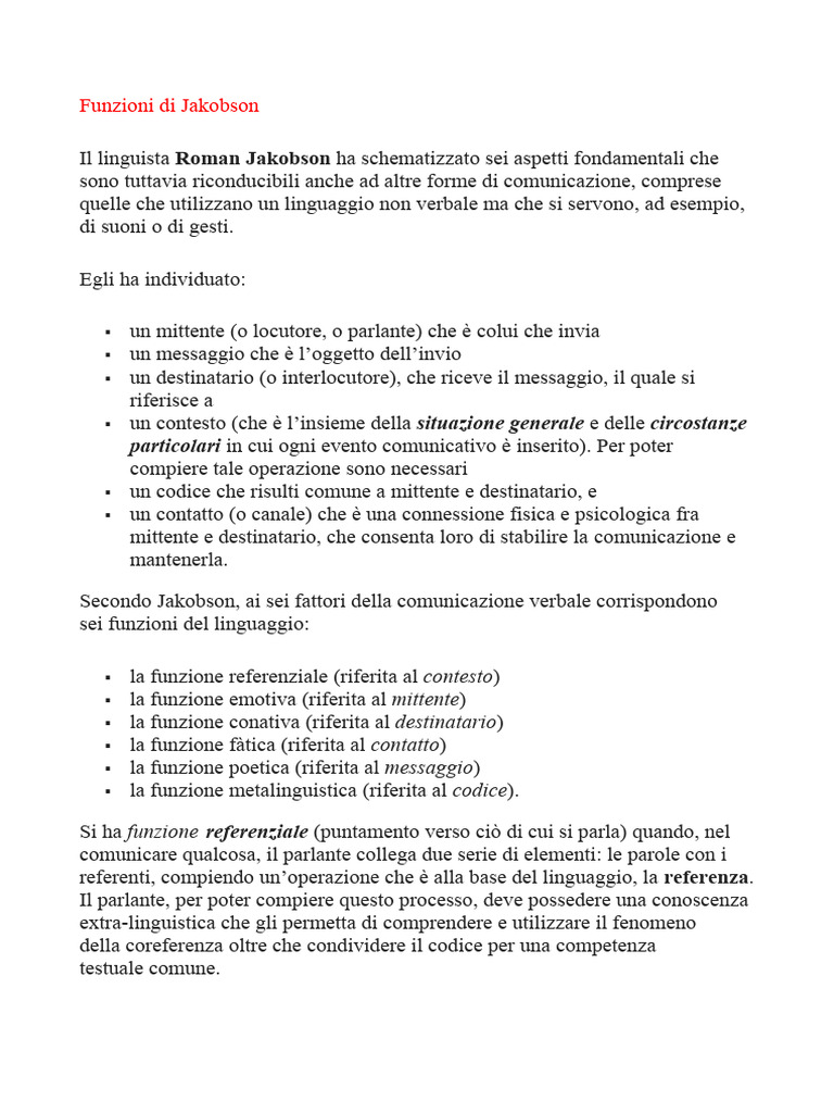 Il linguista Roman Jakobson ha schematizzato sei aspetti fondamentali che
