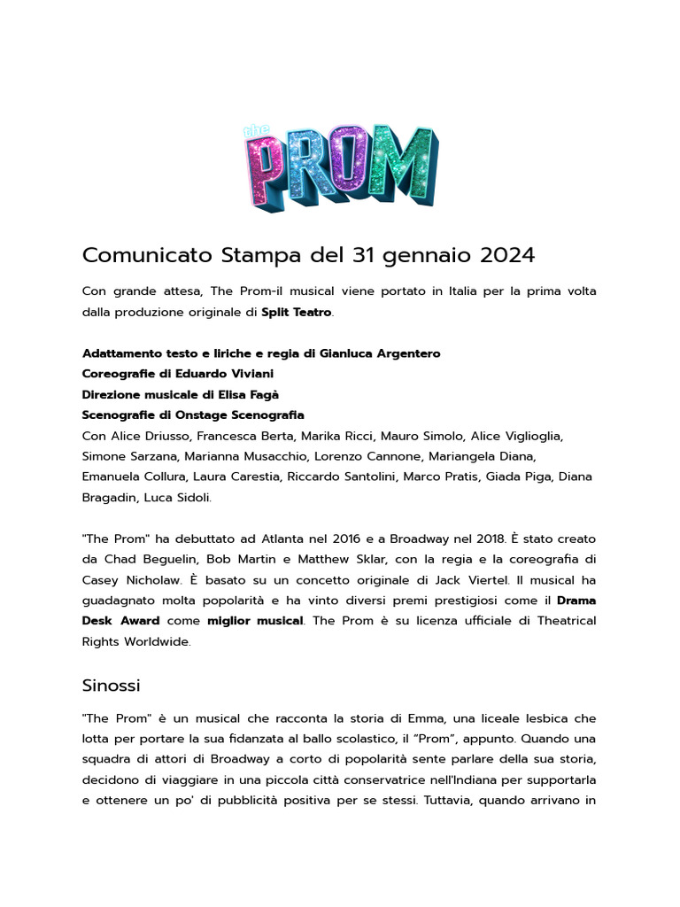 The Prom - Comunicato Stampa