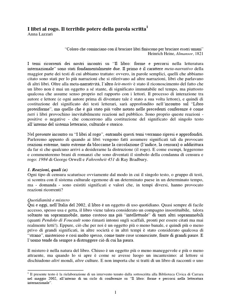 stupidità siano la causa più frequente di rogo e censura, soprattutto nei Paesi che si