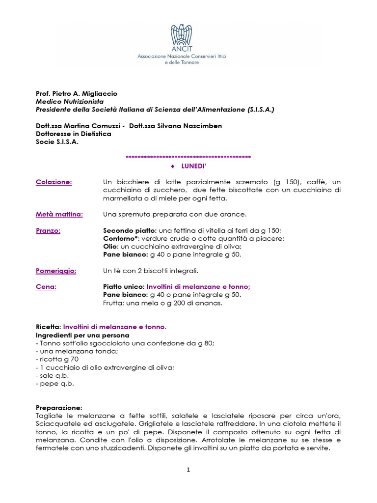 Colazione: Un tè, un cucchiaino di zucchero, g 30 di qualsiasi tipo di biscotti.