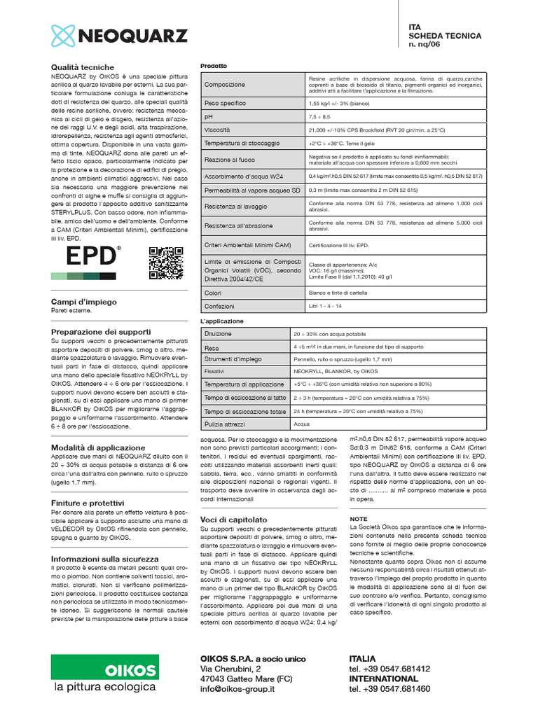 NEOQUARZ by OIKOS è una speciale pittura Resine acriliche in dispersione acquosa, farina di quarzo,cariche