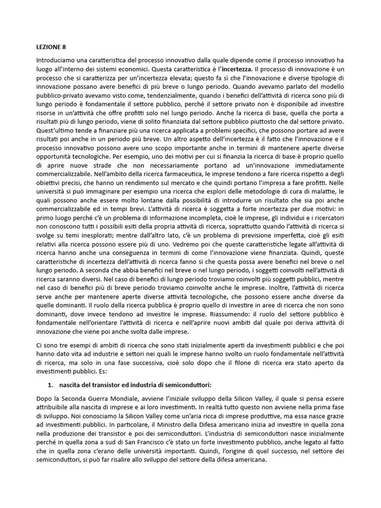 processo che si caratterizza per un’incertezza elevata; questo fa sì che l’innovazione e diverse tipologie di