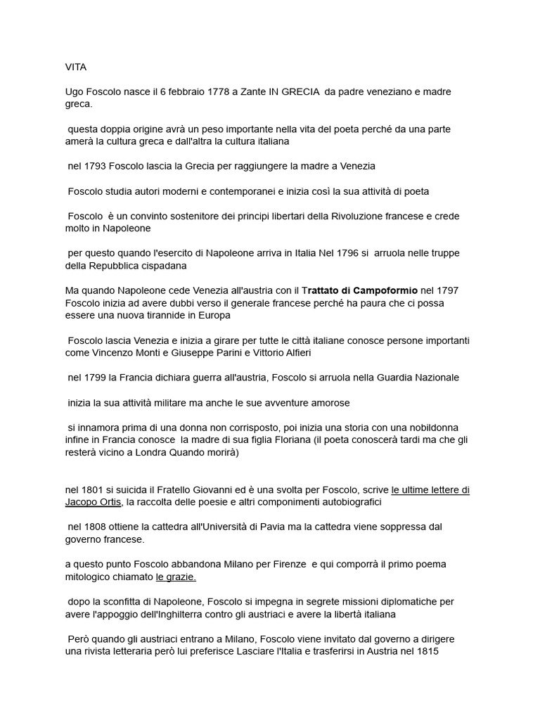 Ugo Foscolo nasce il 6 febbraio 1778 a Zante IN GRECIA da padre veneziano e madre