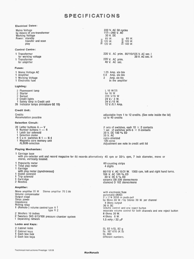 10-1971 MaxManuals Prestige 120B 400SPARE PARTS LIST