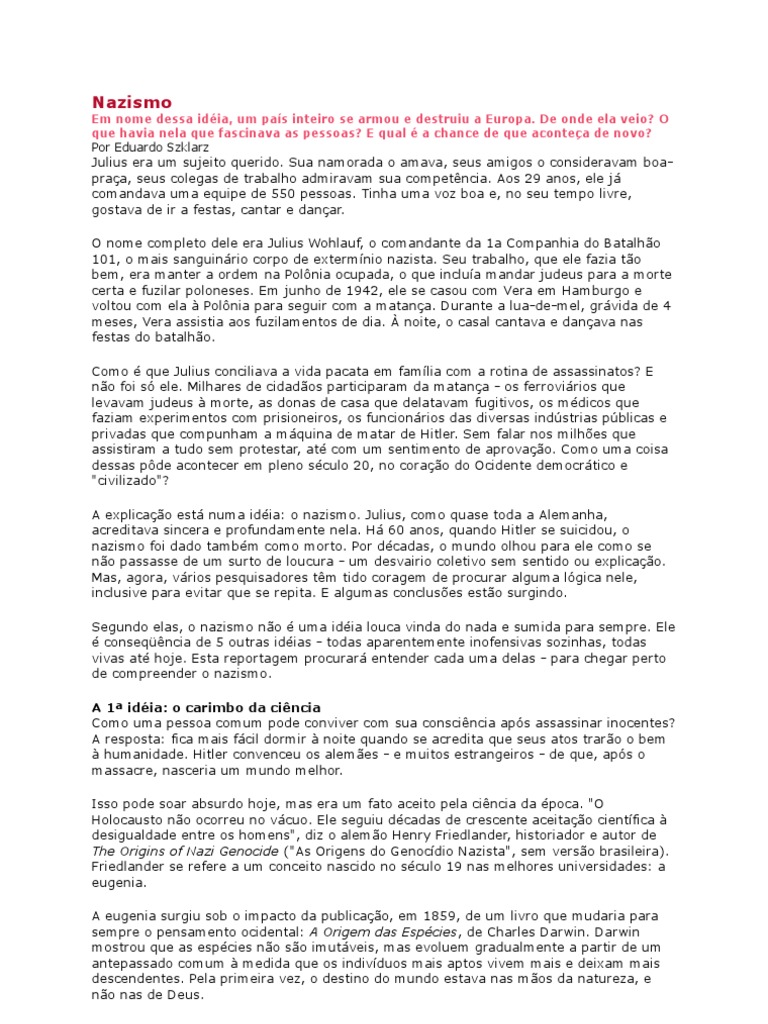 O nazismo pode até ter morrido. Mas os seus 5 pilares, as 5 idéias que deram origem a