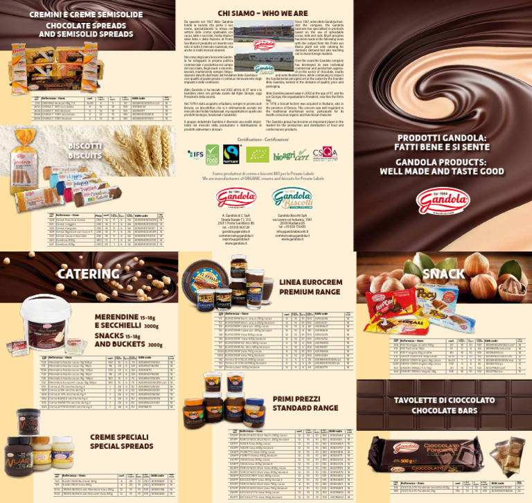 143A CREMA BIANCA alle Mandorle Vaso 350g 12 10 10 100 80083788 18 399 CIOCCOLATO Fondente 25g 150 10 10 100 8008940106006 24