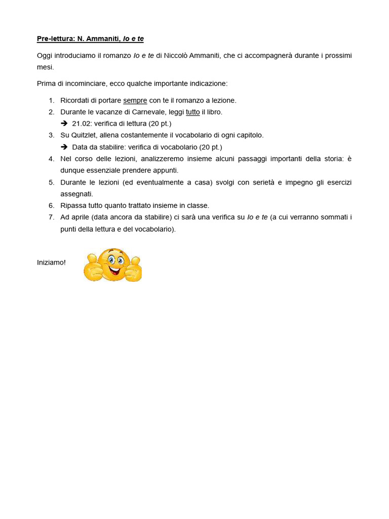 1. Ricordati di portare sempre con te il romanzo a lezione.