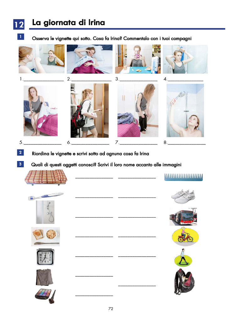2 Riordina le vignette e scrivi sotto ad ognuna cosa fa Irina