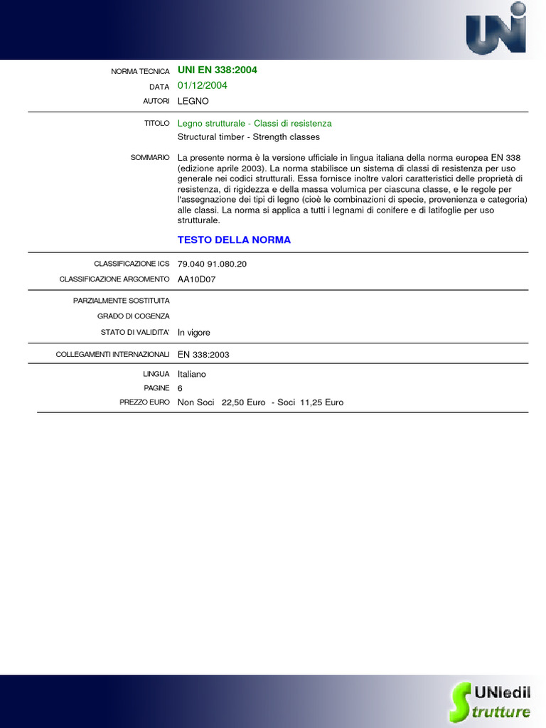 UNI EN 338:2004 - 01-12-2004 - Legno strutturale - Classi di resistenza