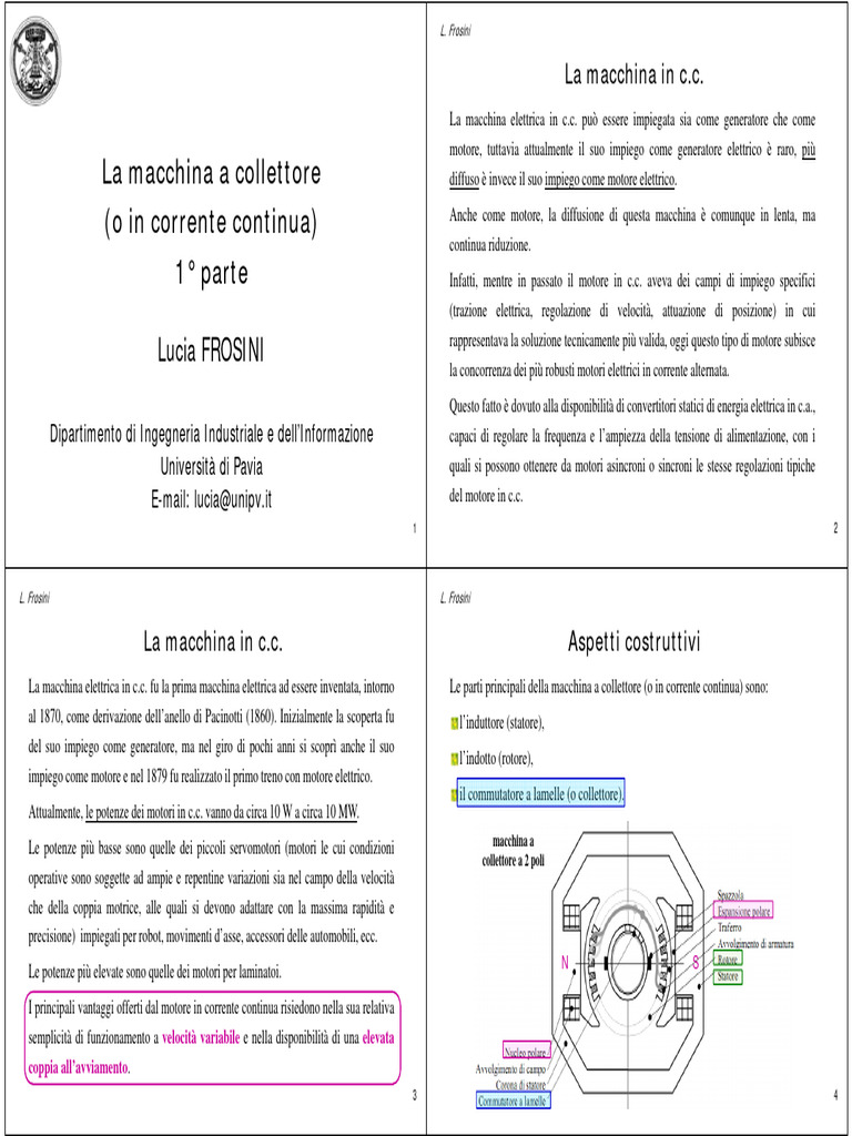 La macchina elettrica in c.c. fu la prima macchina elettrica ad essere inventata, intorno Le parti principali della macchina a collettore (o in corrente continua) sono: