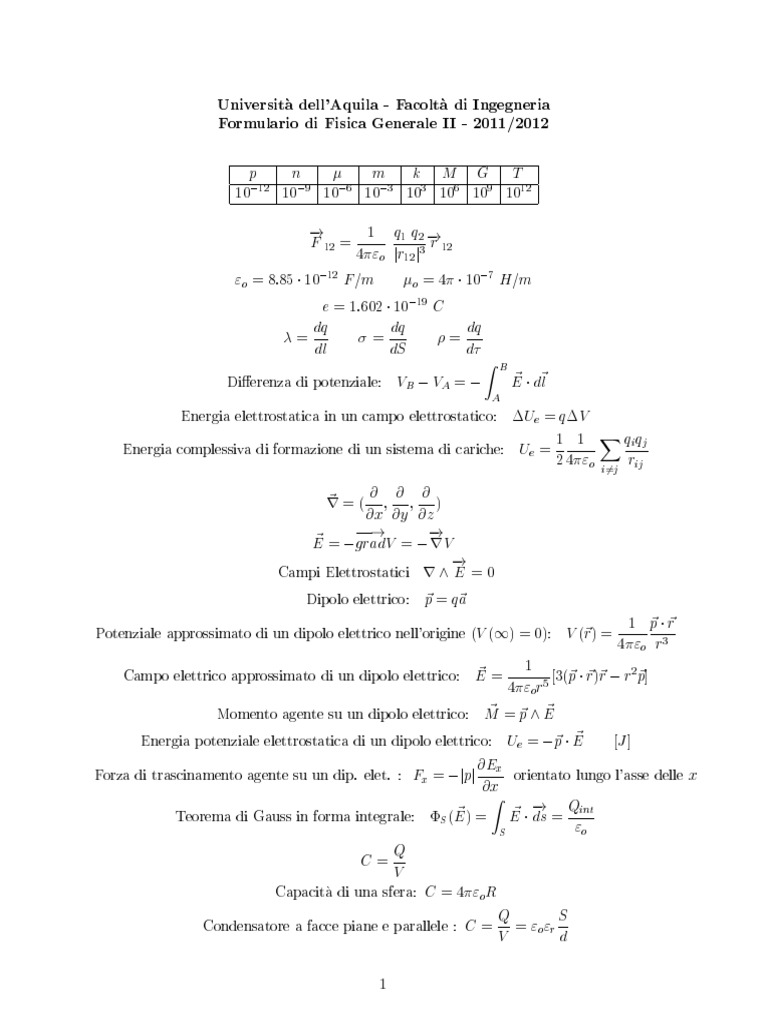Formulario di Fisica Generale II - 2011/2012