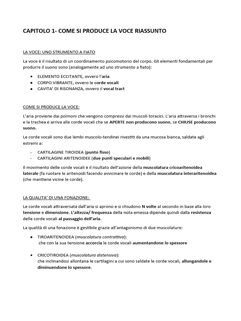CAPITOLO 1- COME SI PRODUCE LA VOCE RIASSUNTO