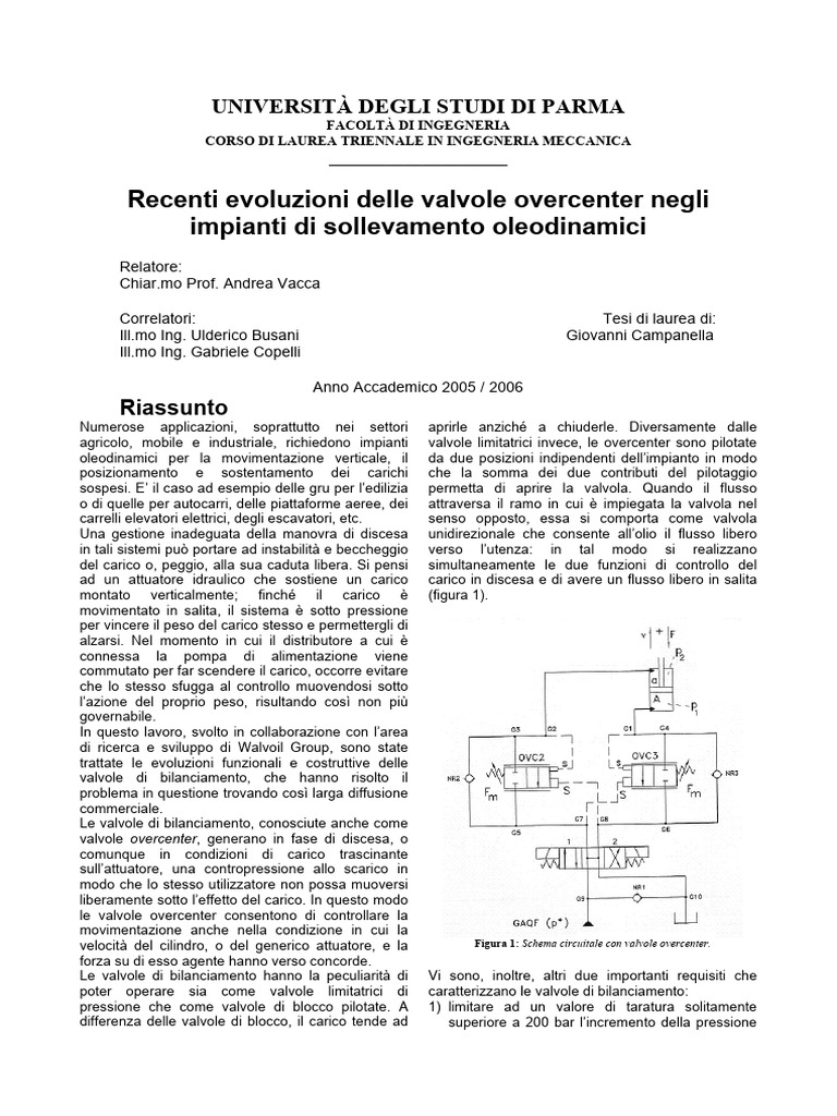 Recenti evoluzioni delle valvole overcenter negli