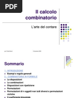 14 capitolo 2 Eventi mutuamente esclusivi. Due eventi sono mutuamente esclusivi se il vericarsi di uno dei due eventi preclude il vericarsi dellaltro. Esempio. Nellesperimento lancio di due monete gli eventi escono due teste e escono due croci sono mutuamente esclusivi. Viceversa gli eventi esce almeno una testa e esce almeno una croce non lo sono, dal momento che gli esiti TC e CT sono compatibili con entrambi gli eventi. Eventi equiprobabili. Due eventi sono equiprobabili se il primo evento ha la stessa probabilit di vericarsi del secondo (si veda oltre per la denizione esatta di probabilit). Esempio. Nellesperimento lancio di una moneta, levento esce testa ha la stessa probabilit dellevento esce croce. Eventi collettivamente esaustivi. Un insieme di eventi collettivamente esaustivo se esaurisce tutti i possibili esiti di un esperimento. Esempio. Nellesperimento lancio di due monete vi sono quattro possibili esiti (TT,TC,CT,CC) che collettivamente deniscono un insieme di eventi esaustivi. Analogamente gli eventi non esce nessuna testa, esce una testa, escono due teste sono collettivamente esaustivi.