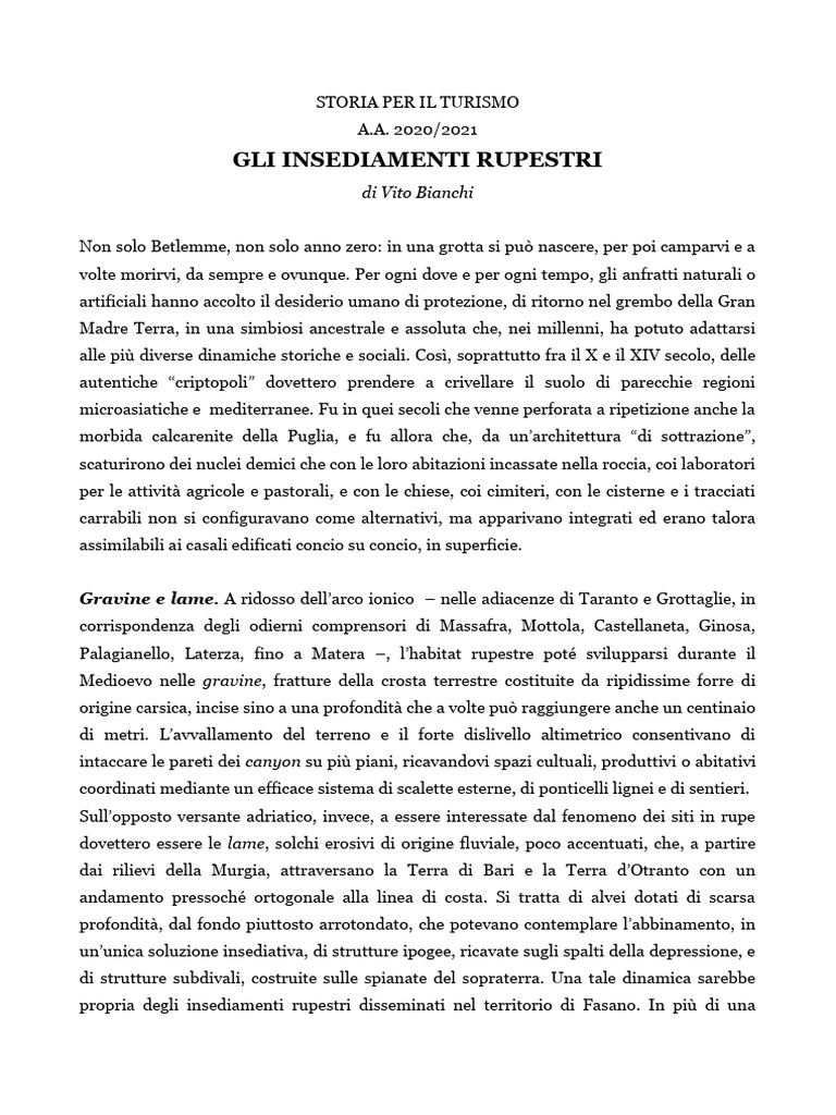 Palagianello, Laterza, fino a Matera –, l’habitat rupestre poté svilupparsi durante il