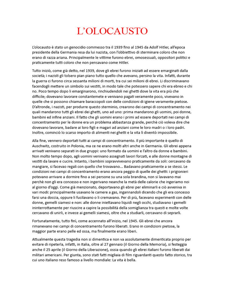 L’olocausto è stato un genocidio commesso tra il 1939 fino al 1945 da Adolf Hitler, all’epoca