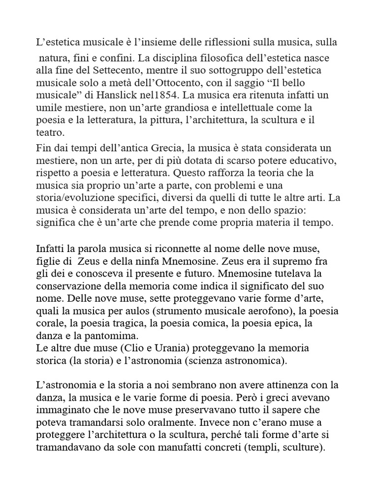 L’estetica musicale è l’insieme delle riflessioni sulla musica, sulla