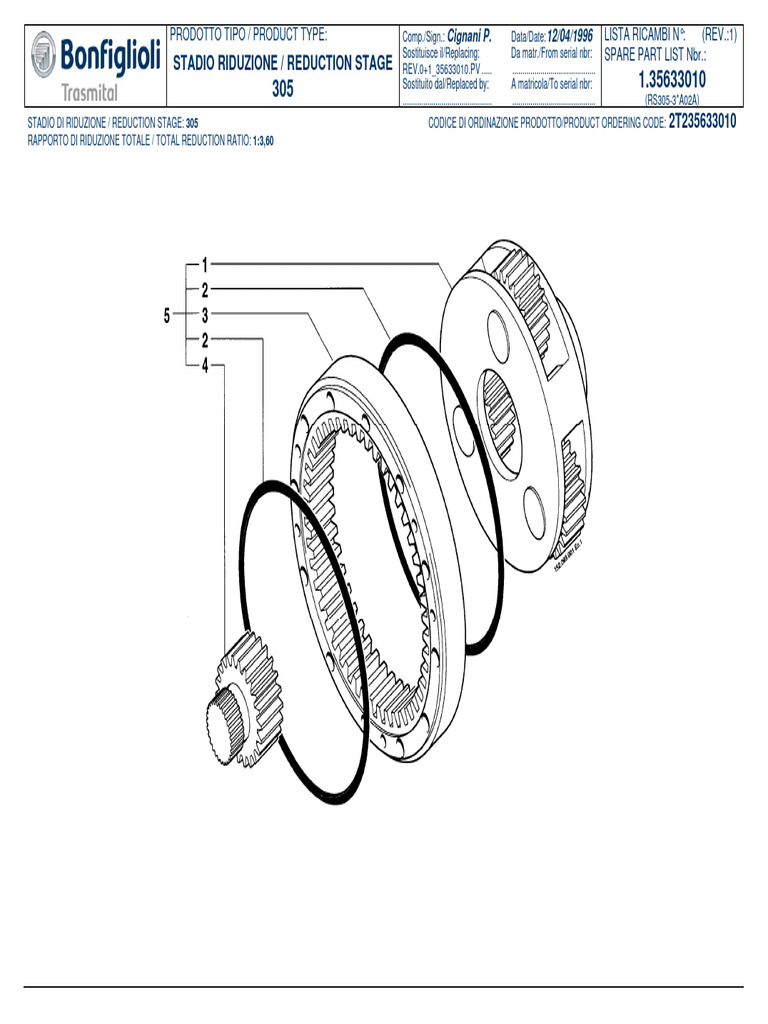 1 2T235333010 1 RIDUZIONE COMPLETA REDUCT. ASSEMBLY ENSEMBLE REDUCT. UNTERSETZUNGSSRUFE 1:3,60 5*