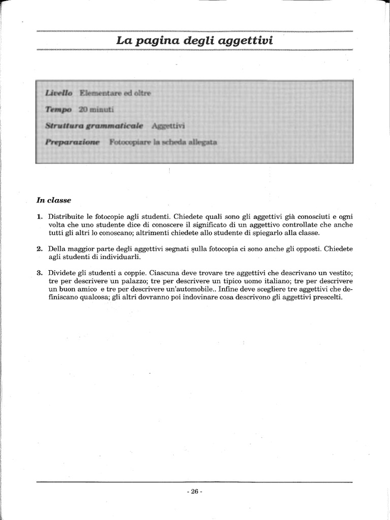 l. Distribuite le fotocopie agli studenti. Chiedete quali sono gli aggettivi gia conosciuti e ogni