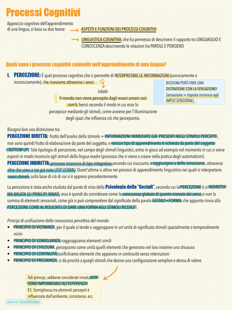 Appunti Processi Cognitivi