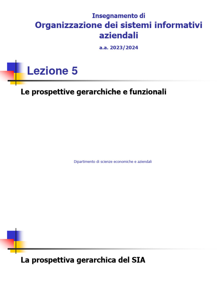prospettiva gerarchica: enfatizza l’articolazione del SIA a supporto dei differenti livelli organizzativi