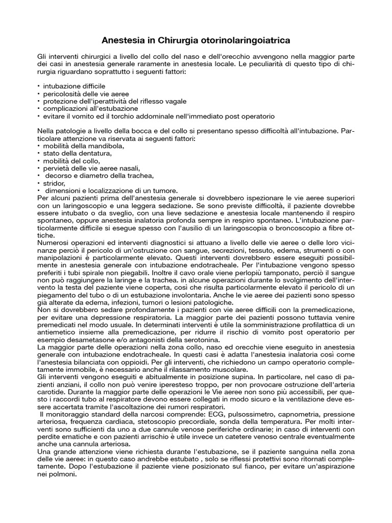 La maggior parte delle operazioni nella zona collo, naso ed orecchie viene eseguito in anestesia