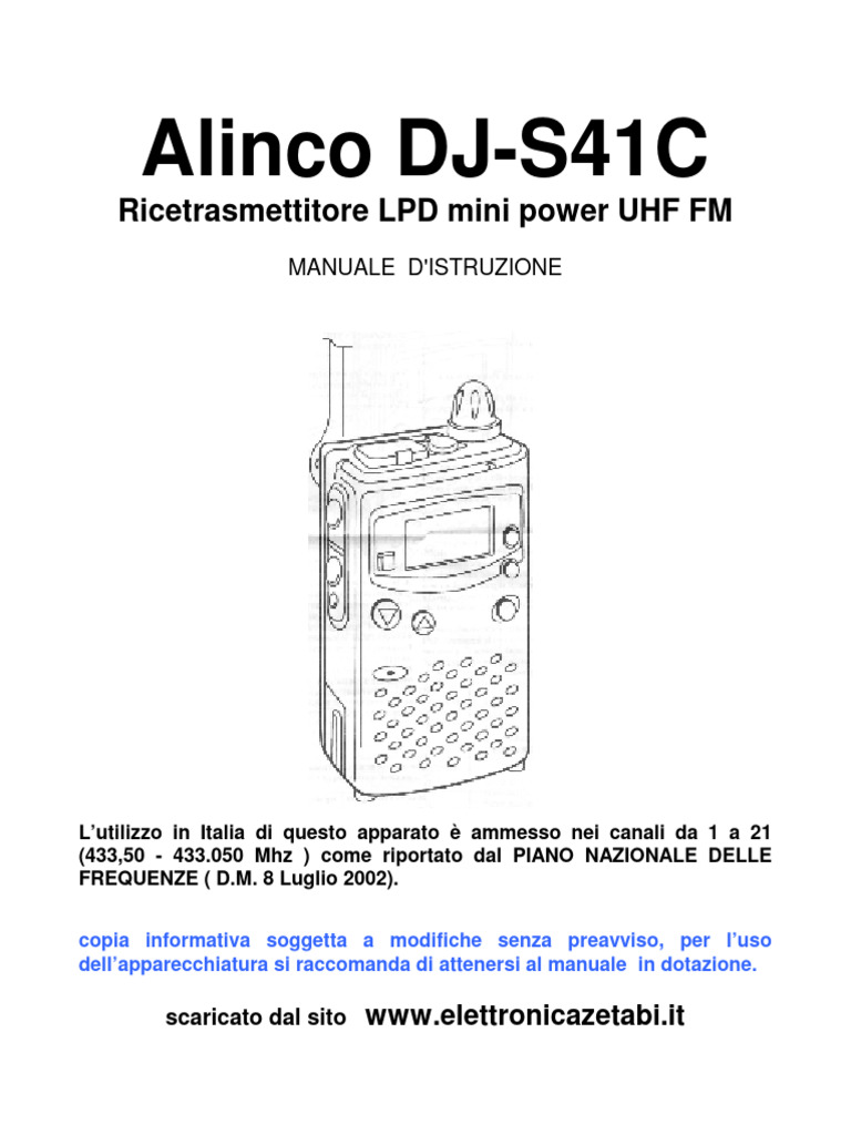 L’utilizzo in Italia di questo apparato è ammesso nei canali da 1 a 21