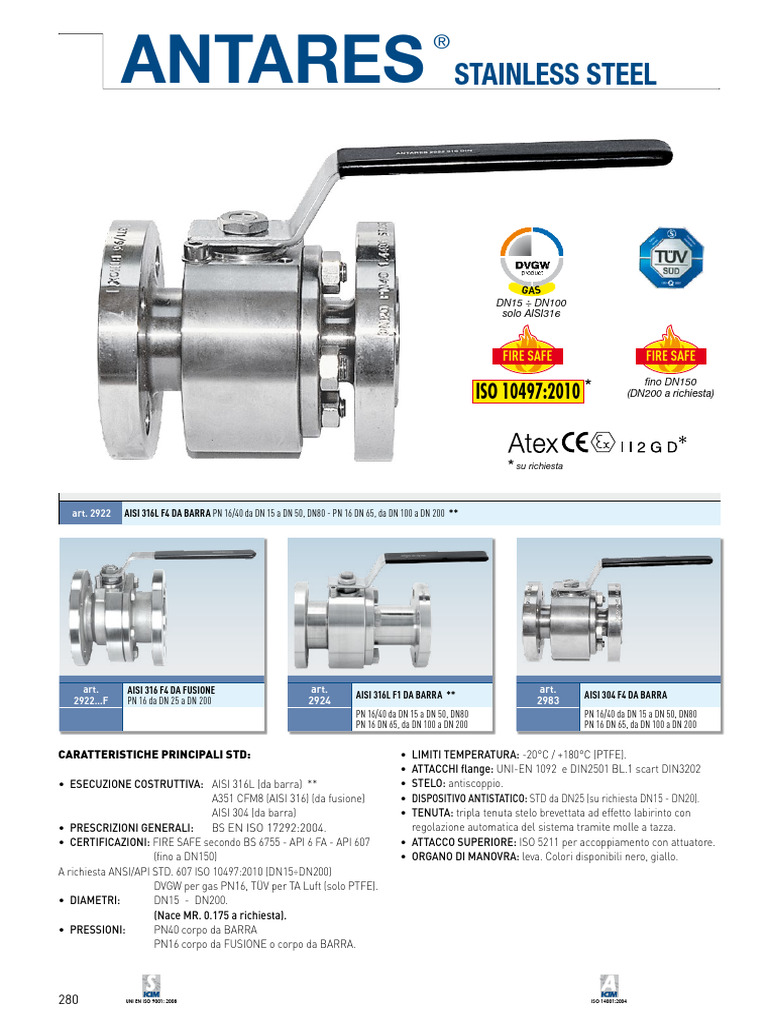 • CERTIFICAZIONI: FIRE SAFE secondo BS 6755 - API 6 FA - API 607 • ATTACCO SUPERIORE: ISO 5211 per accoppiamento con attuatore.