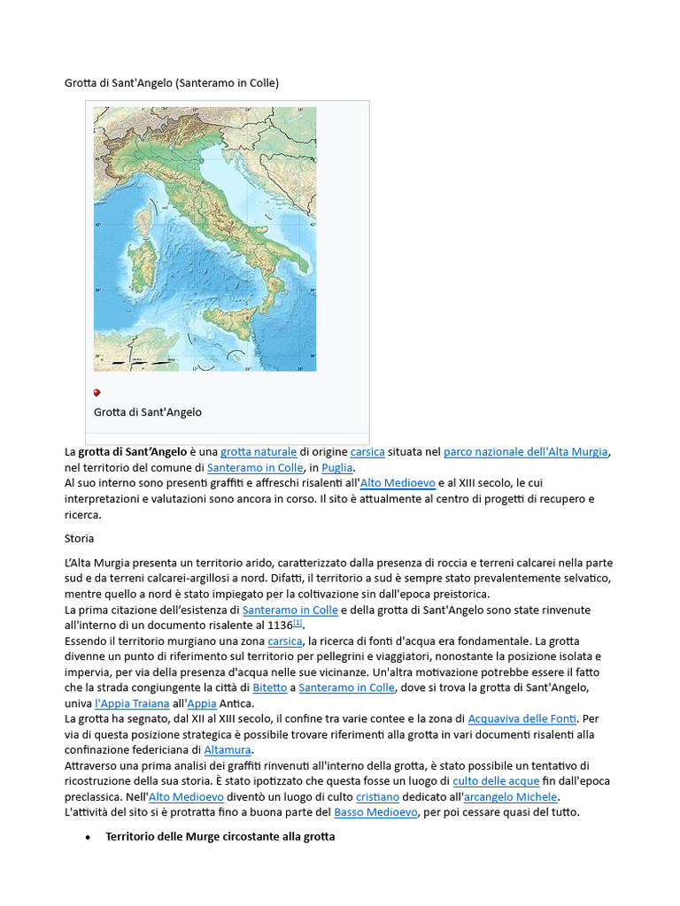 che la strada congiungente la città di Bitetto a Santeramo in Colle, dove si trova la grotta di Sant'Angelo,