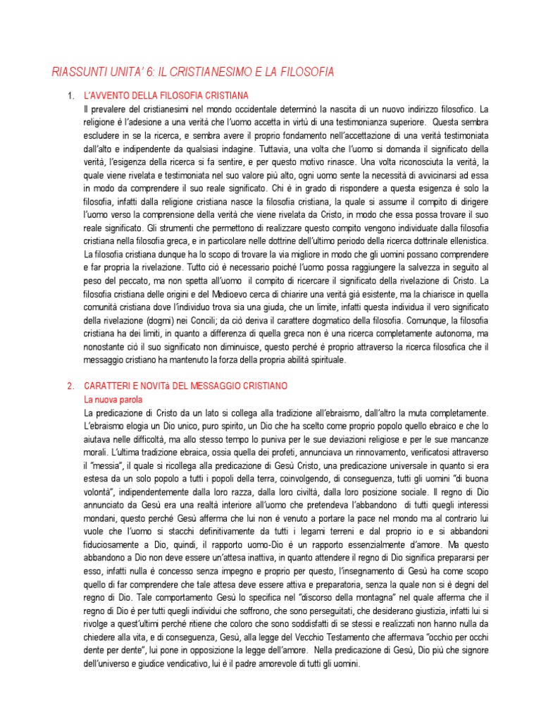 RIASSUNTI UNITA 6: IL CRISTIANESIMO E LA FILOSOFIA