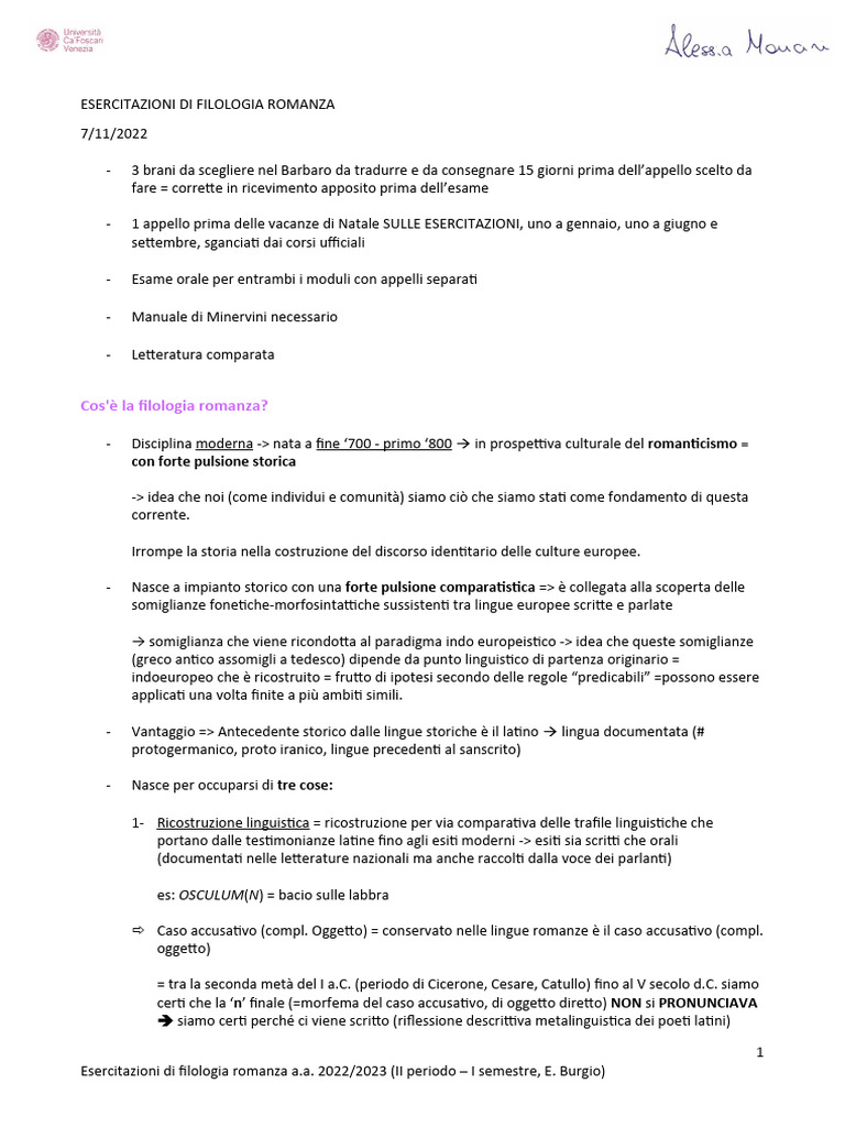 Esercitazioni di filologia romanza a.a. 2022/2023 (II periodo – I semestre, E. Burgio)