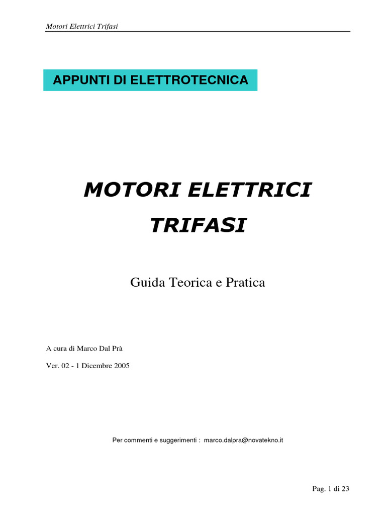 Sul motore elettrico trifase esistono già moltissimi documenti, e soprattutto su quello asincrono.