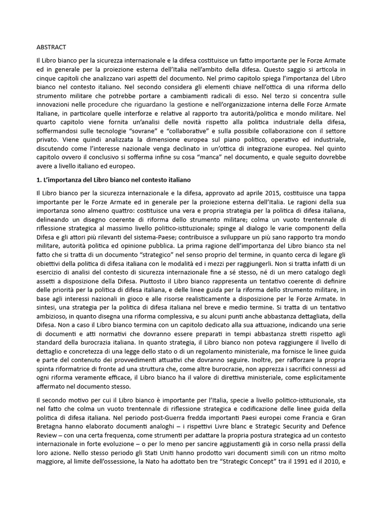 ed in generale per la proiezione esterna dell’Italia nell’ambito della difesa. Questo saggio si articola in