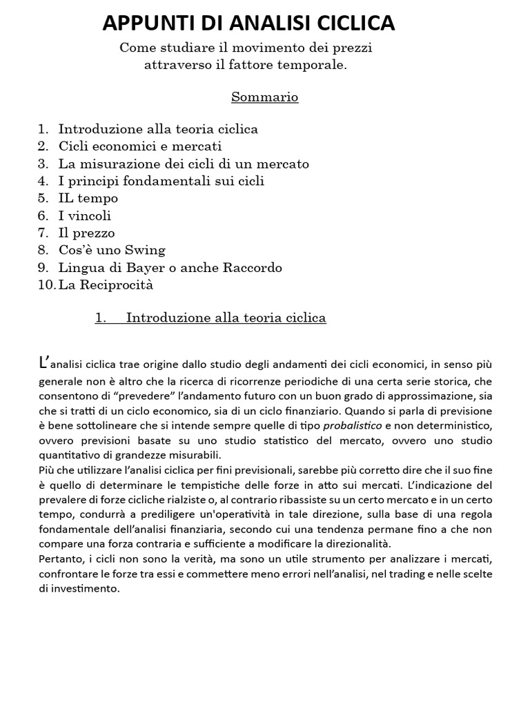L’analisi ciclica trae origine dallo studio degli andamenti dei cicli economici, in senso più