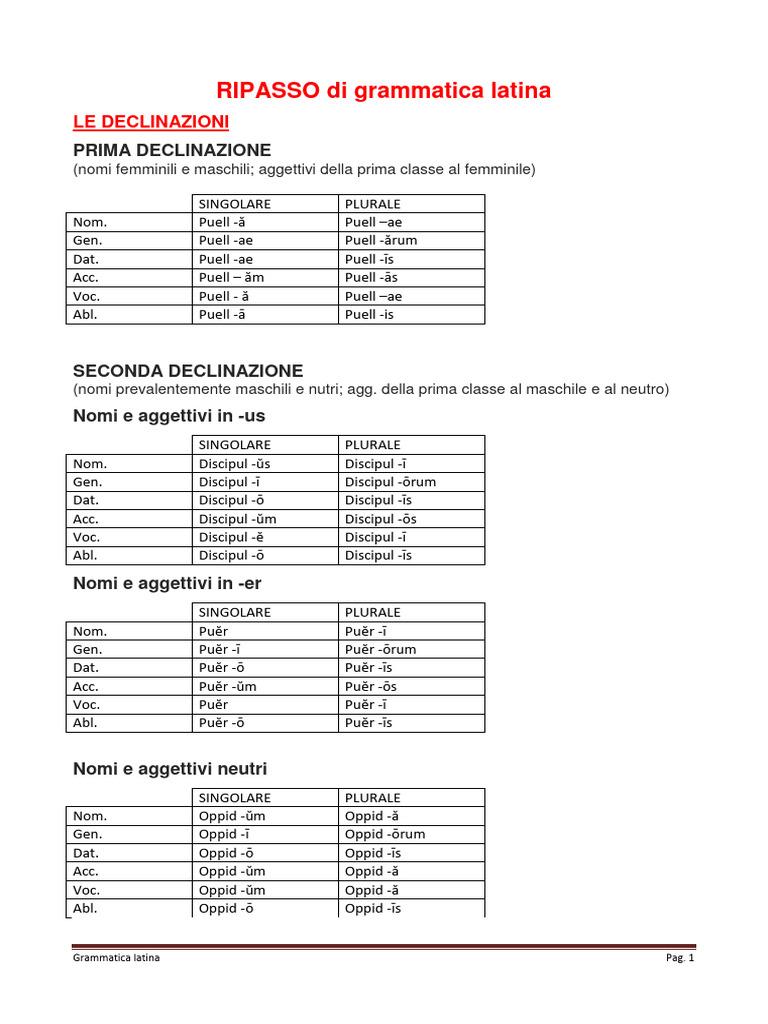 (nomi femminili e maschili; aggettivi della prima classe al femminile)