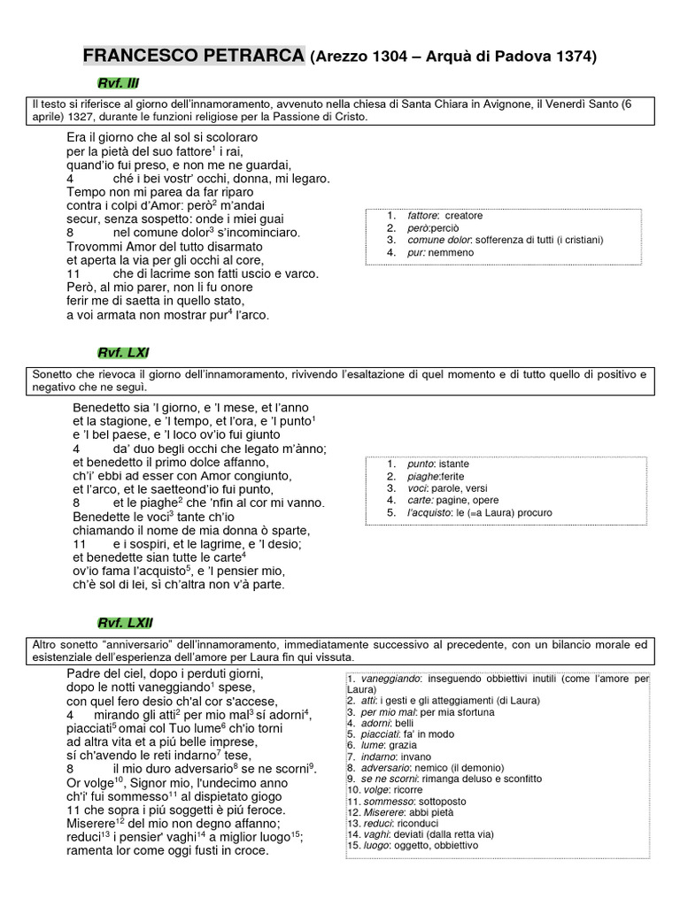 Il testo si riferisce al giorno dell’innamoramento, avvenuto nella chiesa di Santa Chiara in Avignone, il Venerdì Santo (6