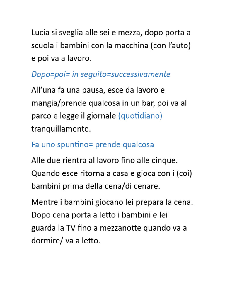 Lucia si sveglia alle sei e mezza, dopo porta a
