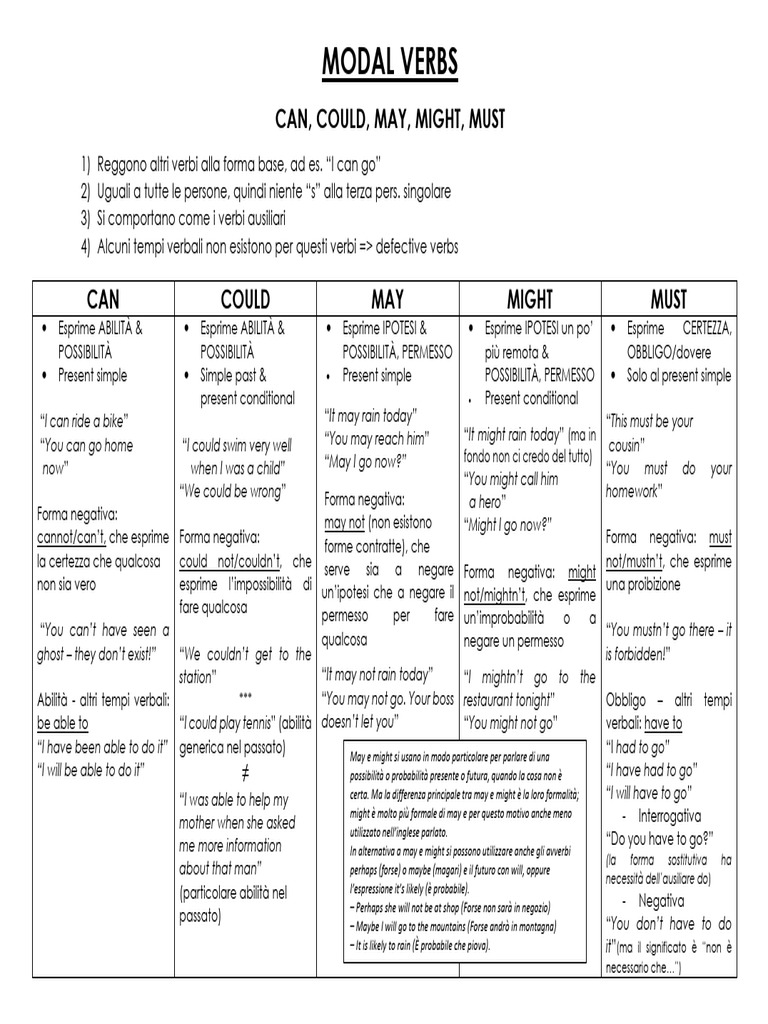 be able to “I could play tennis” (abilità doesn’t let you” “You might not go” verbali: have to