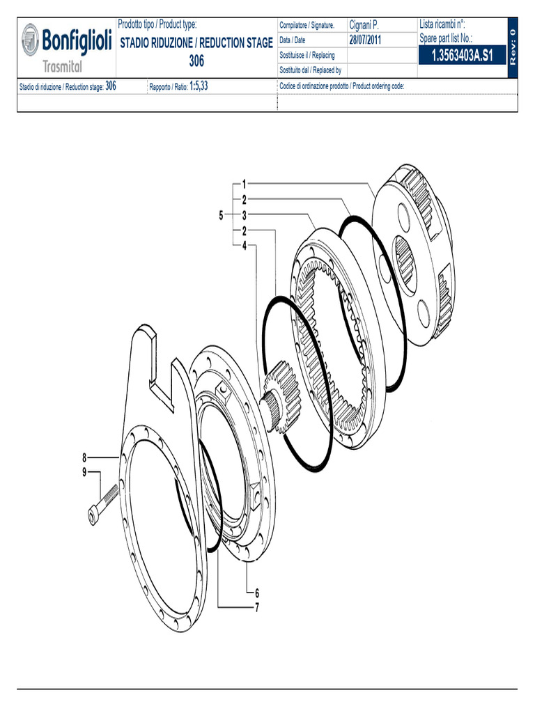 STADIO RIDUZIONE / REDUCTION STAGE Data / Date 28/07/2011 Spare part list No.: