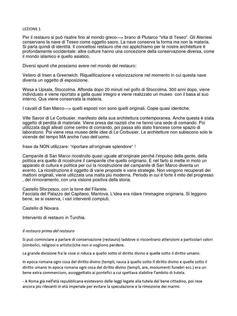 normativo) e di restauro vero e proprio, inteso come codice di condotta per l'intervento diretto e materiale