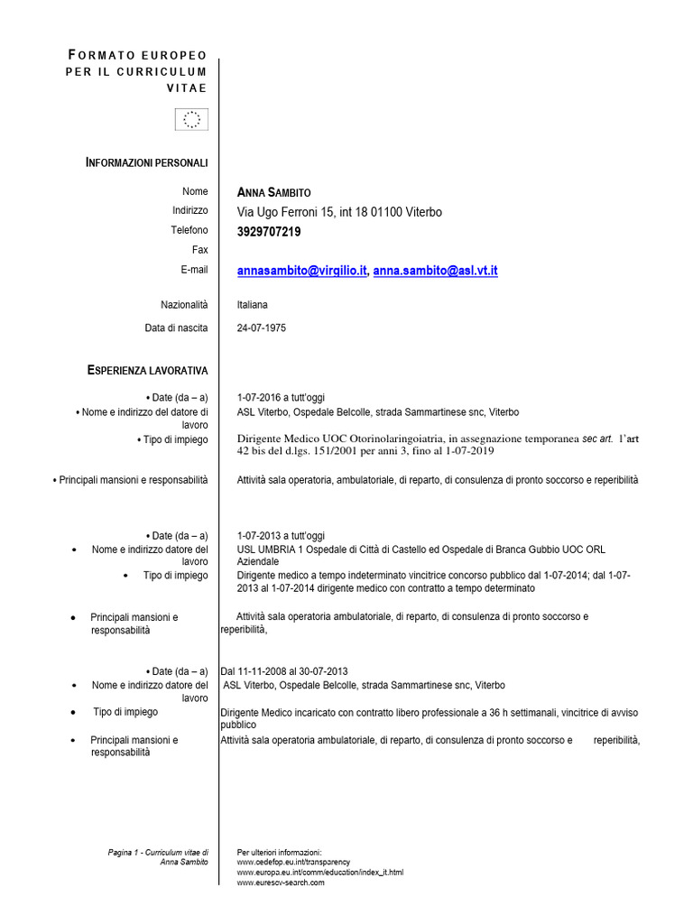 Pagina 1 - Curriculum vitae di Per ulteriori informazioni: